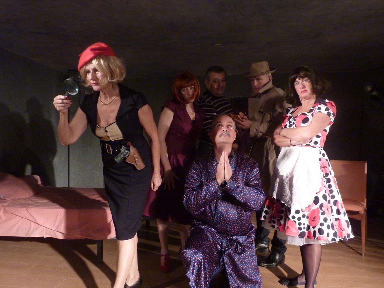 Photo: « Une affaire policière », c’est la dernière pièce dans laquelle Jackie (à gauche avec le béret rouge) a joué avec la troupe de théâtre des Adrets.