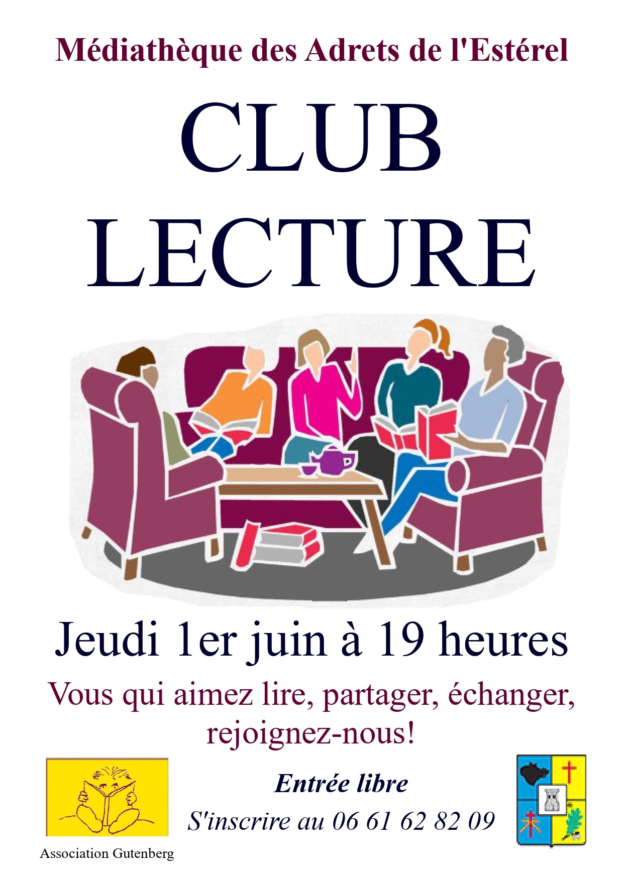 L’ association Gutenberg (médiathèque) organise un club de lecture, pour un moment de partage et de convivialité.