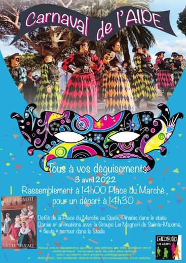 L’Association Indépendante des Parents d’Elèves (AIPE) organise un carnaval aux Adrets-de-l’Estérel. Rendez-vous, tous déguisés: