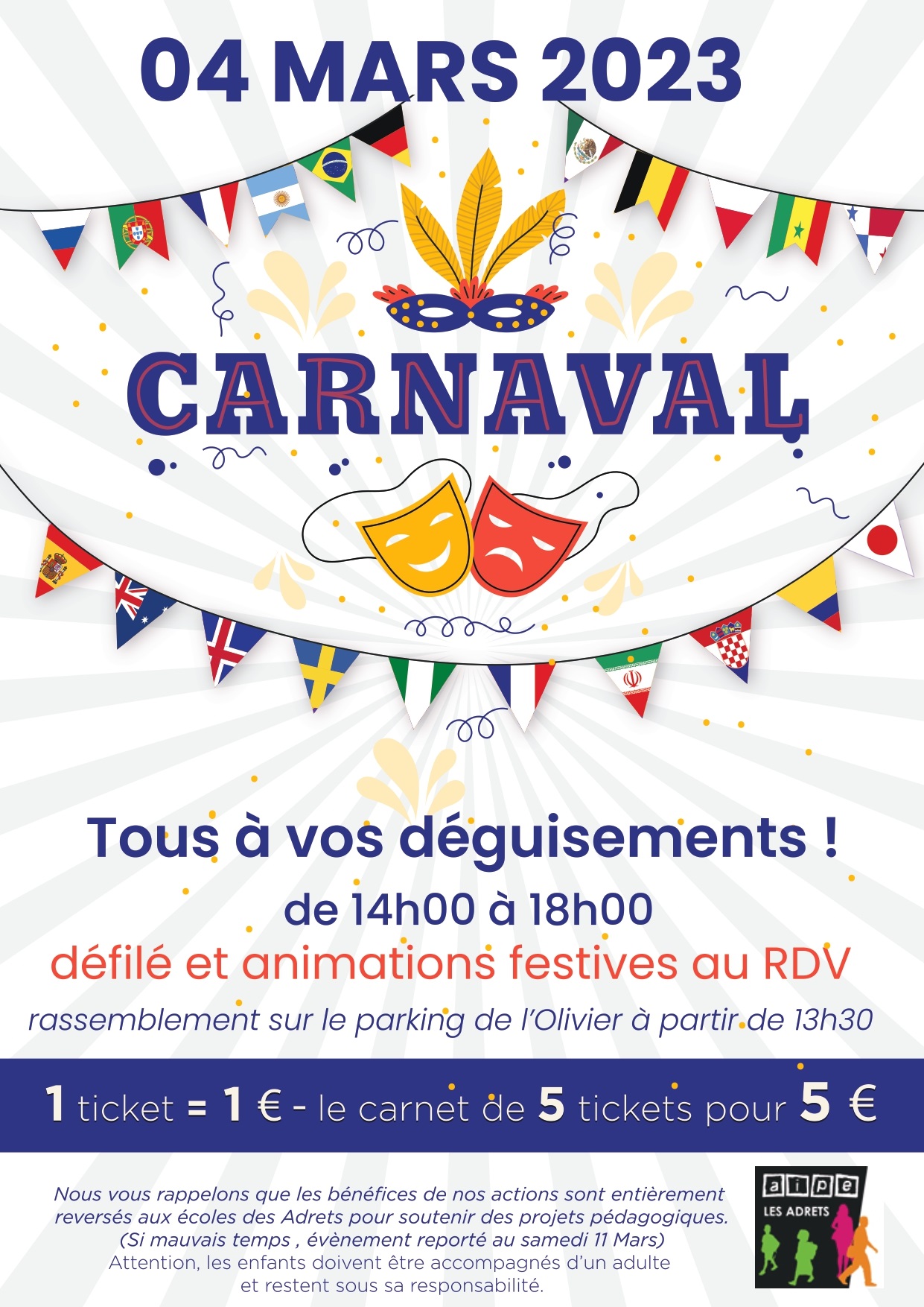 L’Association Indépendante des Parents d’Elèves (AIPE) organise un carnaval aux Adrets-de-l’Estérel. Rendez-vous, tous déguisés: