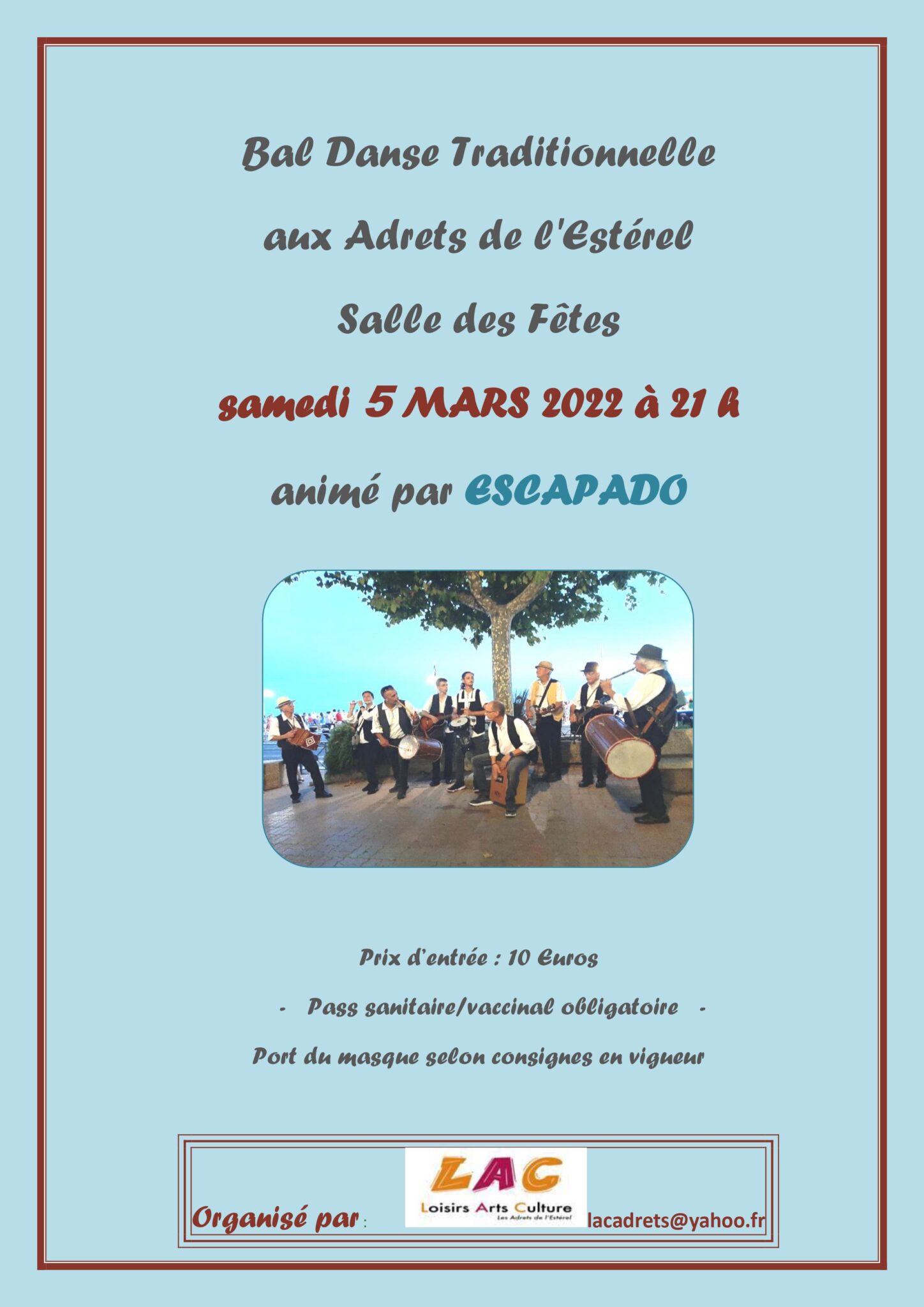L’association Loisirs Art Culture (LAC) organise prochainement un bal traditionnel aux Adrets-de-l’Estérel animé par le groupe Escapado.