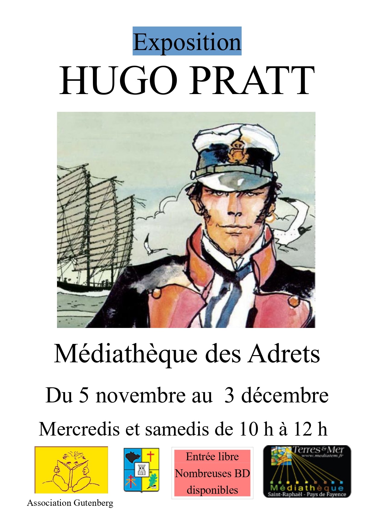 La Médiathèque des Adrets-de-l’Estérel vous propose, du 5 novembre au 3 décembre 2022, une exposition sur le thème de Hugo PRATT.