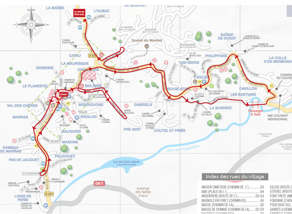 Puis le Père Noël débutera sa grande tournée en direct dans le village (voir parcours ci-dessous)