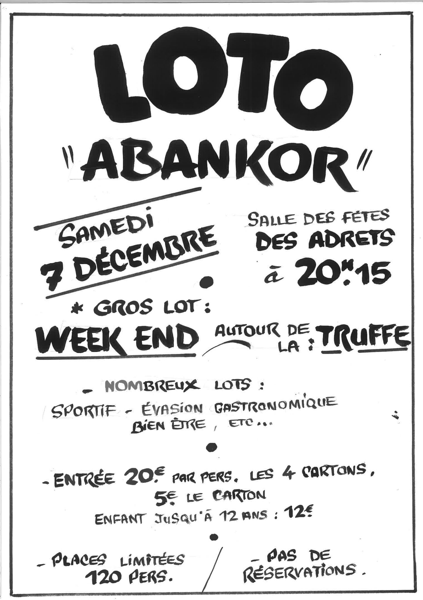 L’association humanitaire ABANKOR organise un loto prochainement :