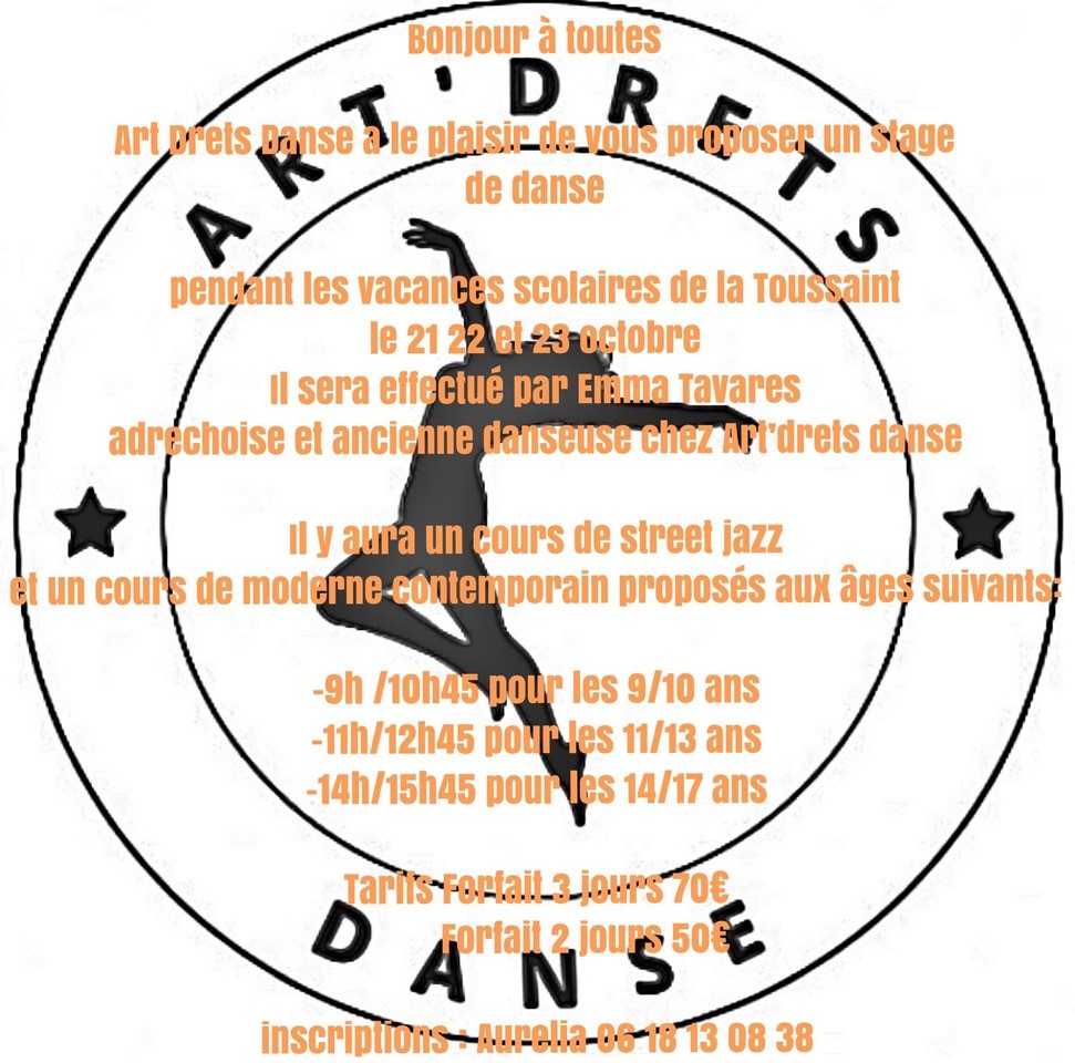 L’association adréchoise Art Drets Danse vous propose un stage de danse pendant les vacances scolaires de la Toussaint le 21-22 et 23 octobre 2024.
