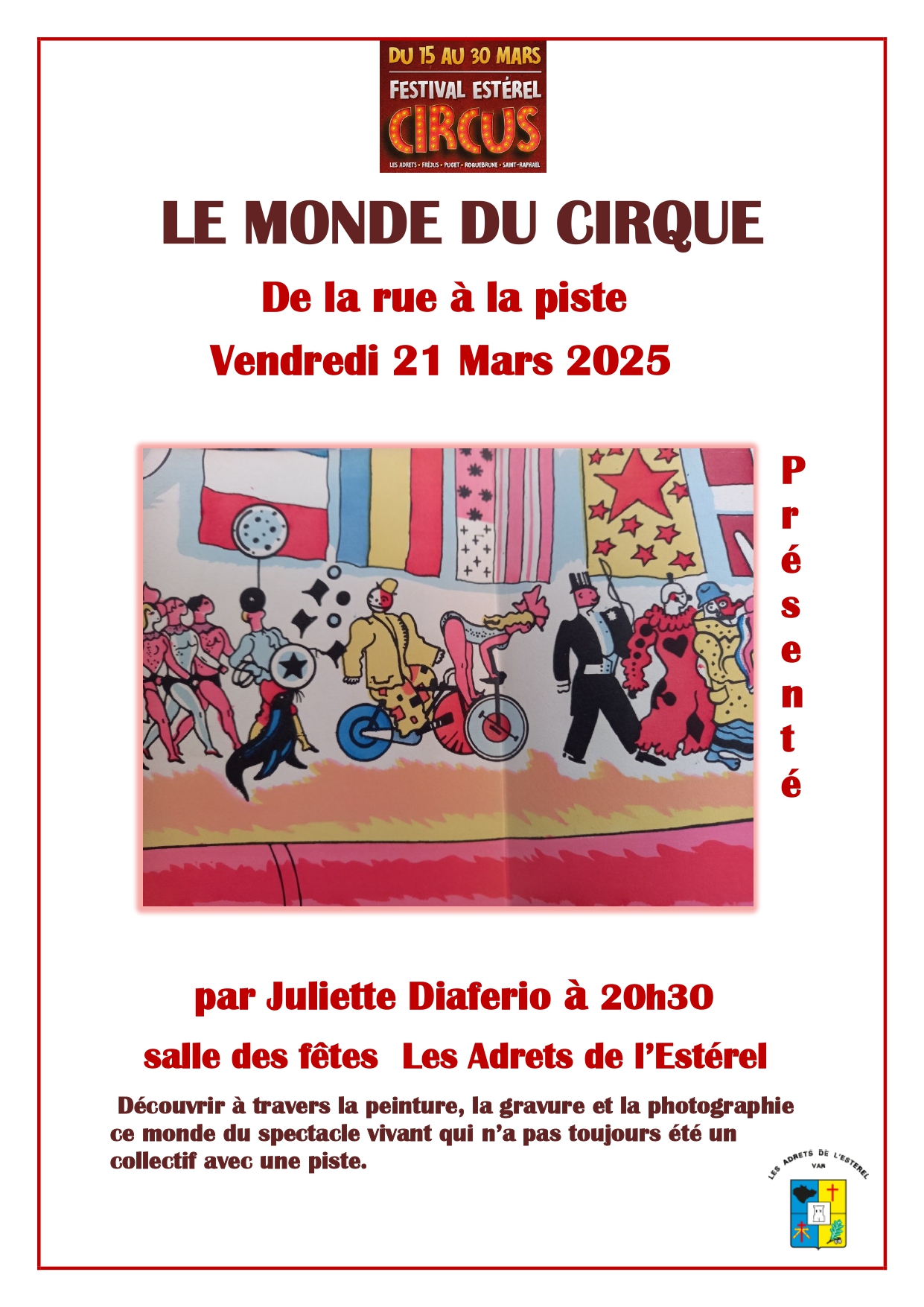 Dans le cadre du FESTIVAL ESTEREL CIRCUS qui se déroulera du 15 au 30 Mars 2025 dans les cinq communes d’Estérel Côte d’Azur Agglomération, l’association Gutenberg organise une conférence sur