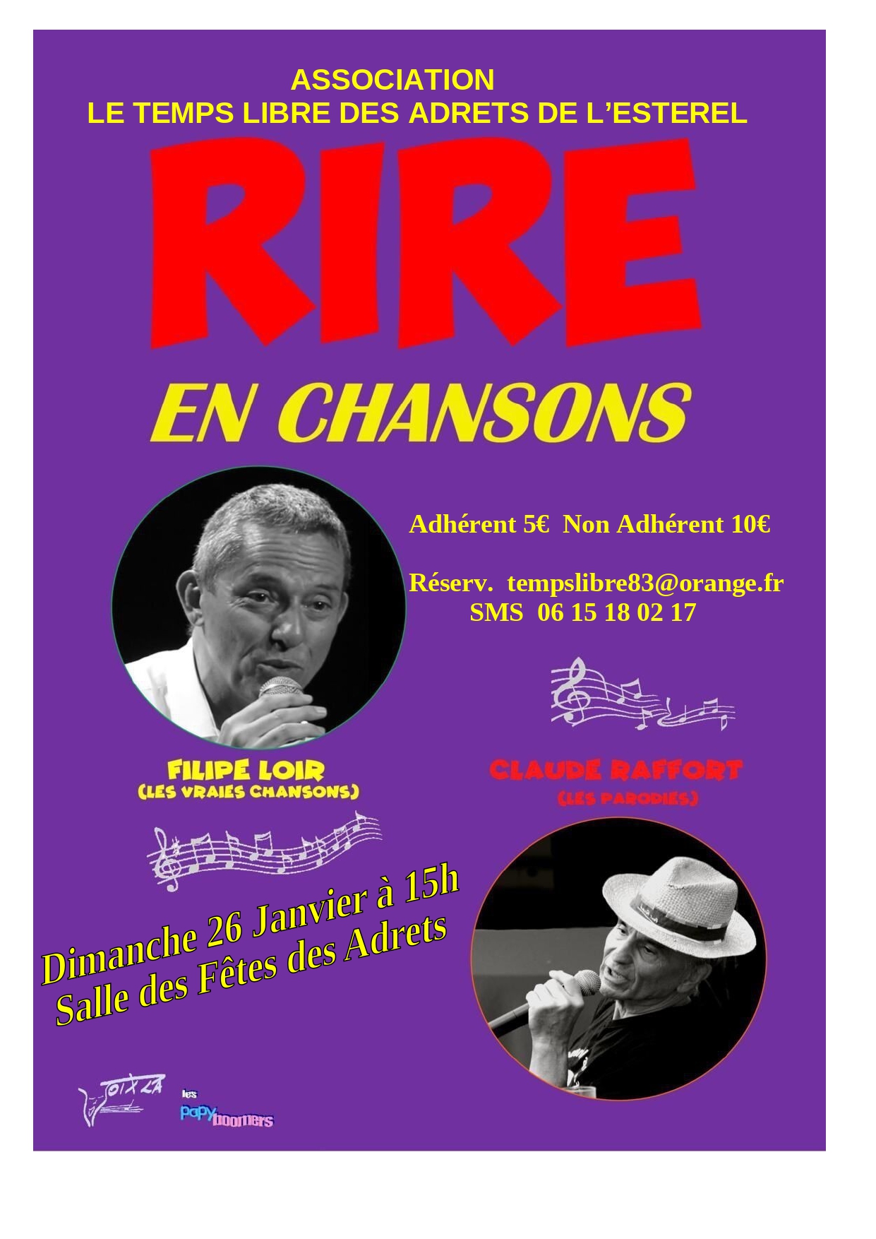 L’association le Temps Libre des Adrets-de-l’Estérel vous propose le spectacle « Rire en chansons ».