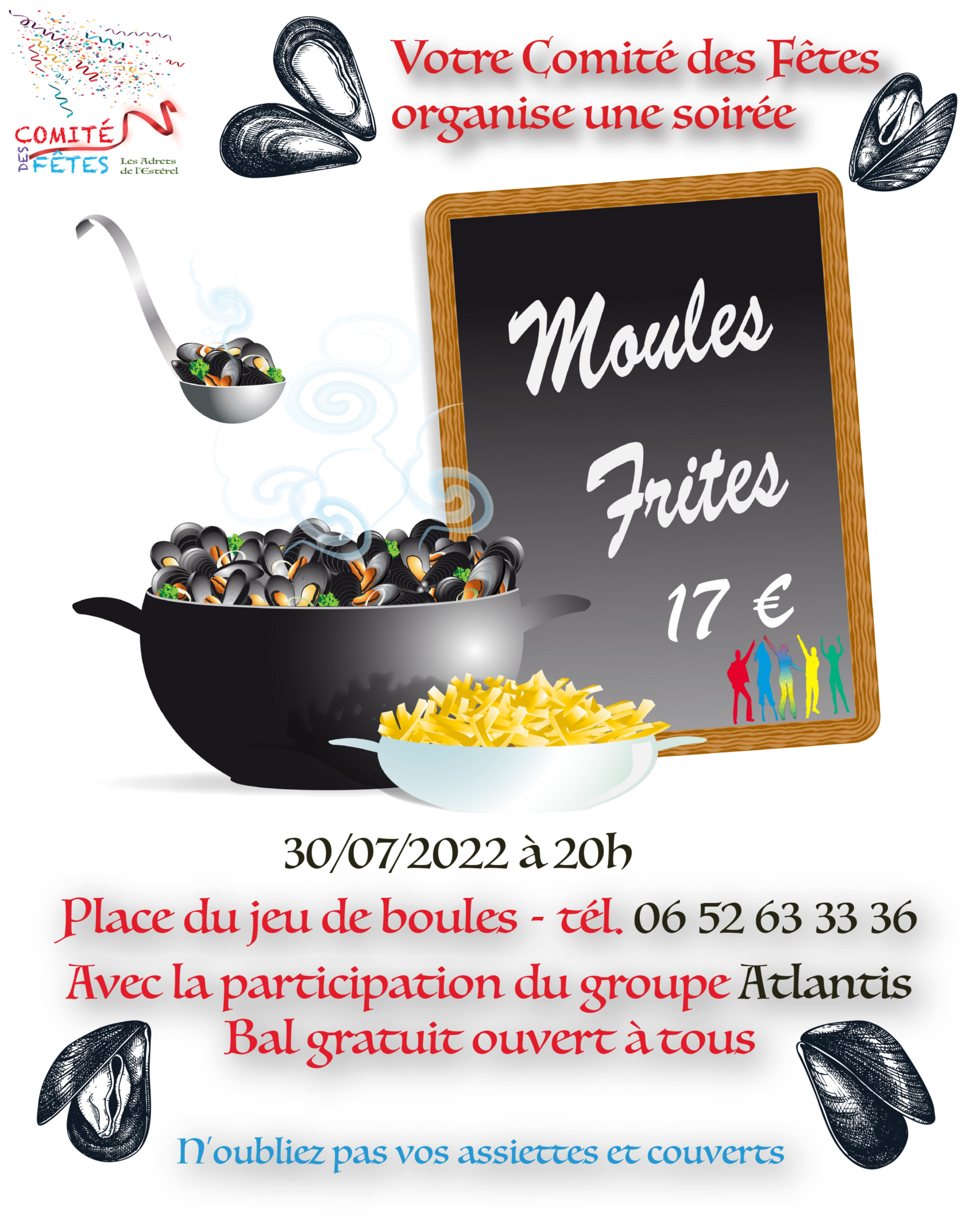 Le Comité des Fêtes des Adrets-de-l’Estérel organise une soirée moules frites animée par le groupe Atlantis.