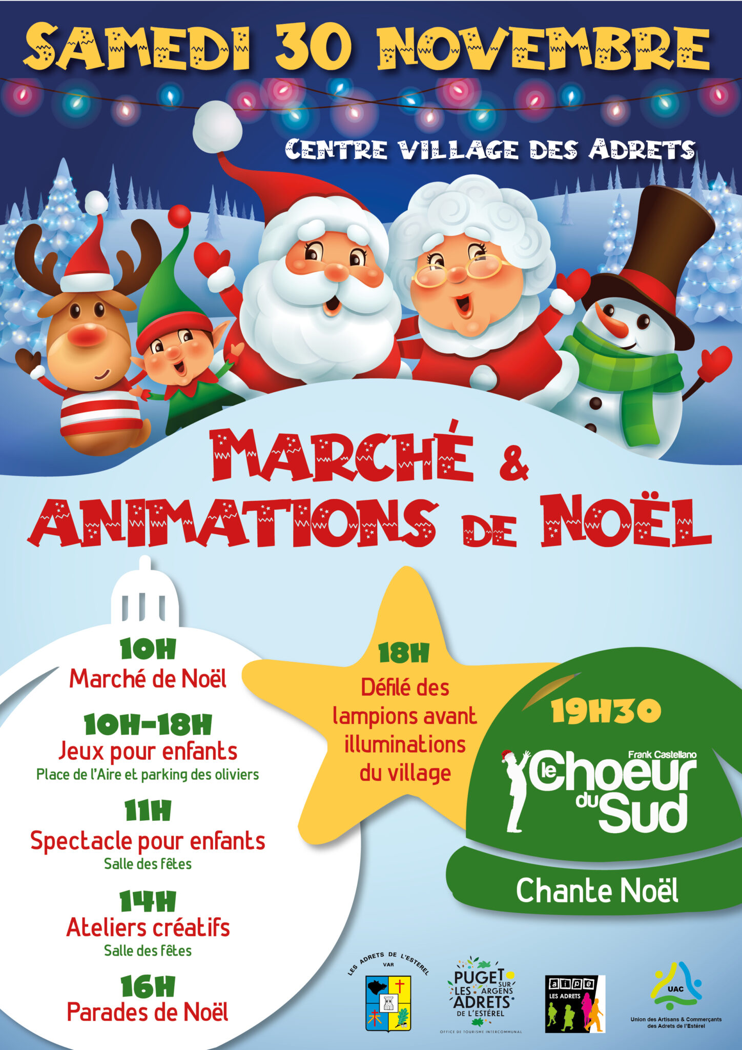 Venez fêter le lancement de la période de Noël le samedi 30 novembre 2024, à partir de 10h, au centre du village des Adrets-de-l’Estérel !