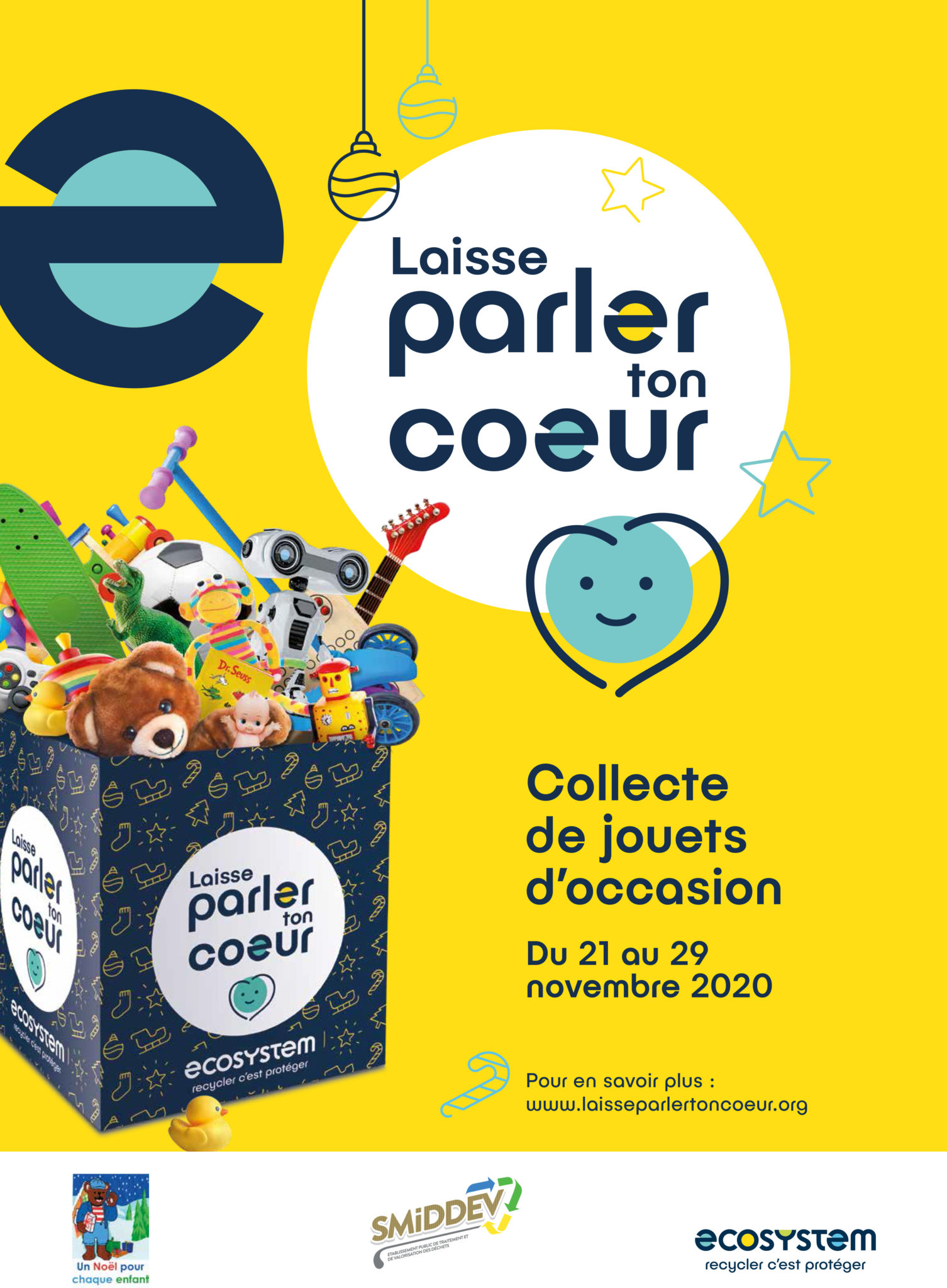 A l’occasion de la Semaine Européenne de Réduction des Déchets (SERD), le SMIDDEV en collaboration avec Ecosystem, l’éco-organisme en charge de la collecte et du recyclage des équipements électriques, lance la 11ème édition de la collecte solidaire de jouets d’occasion « Laisse Parler Ton Cœur ».