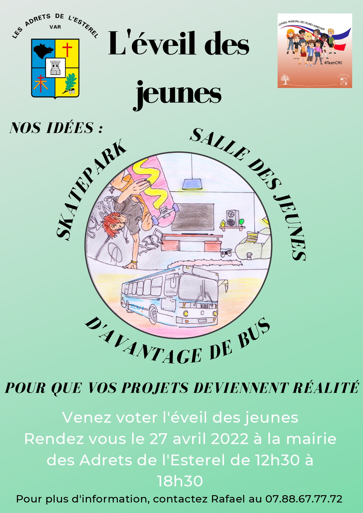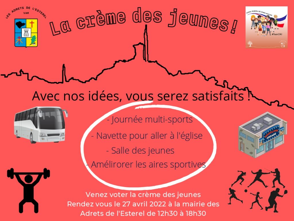 Mercredi 27 avril de 12h30 à 17h dans la salle du conseil de la Mairie, tous les jeunes Adréchois de 10 à 17 ans sont invités à venir déposer leur bulletin dans l’urne pour élire leurs représentants au Conseil Municipal des Jeunes.