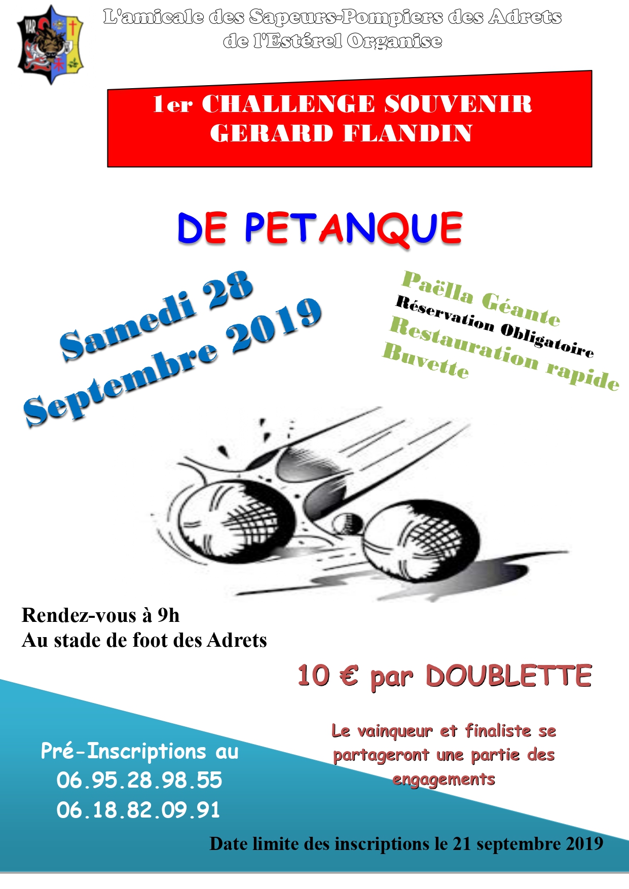 L’amicale des Sapeurs-Pompiers des Adrets de l’Estérel organise :