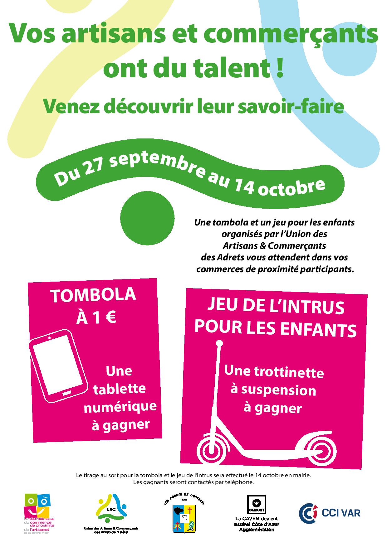 Du 27 au 14 octobre 2021 l’Union des Artisans et Commerçants (UAC), en partenariat avec la Chambre de Commerce et d’Industrie (CCI) du Var, organise une opération pour promouvoir nos commerces de proximité.