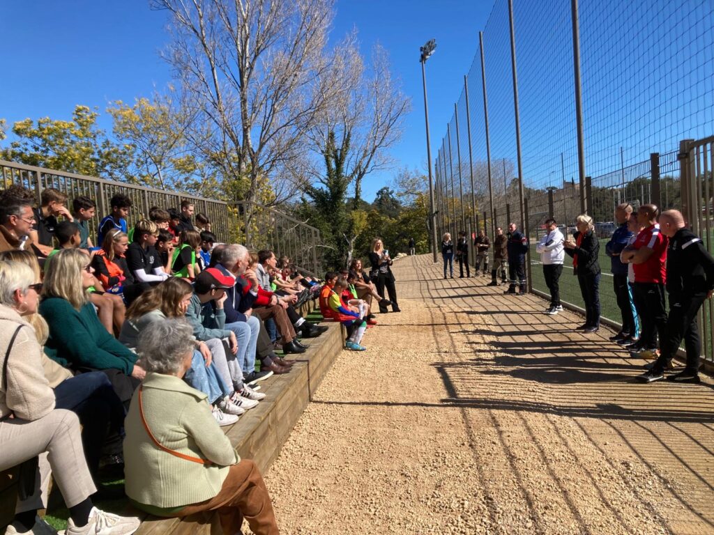Jeunes sportifs, entraîneurs, élus du territoire, ont écouté, avec attention, les discours prononcés pour cette inauguration, ainsi que celui de Monsieur Christophe HERLEMONT, Président de l’Association de football AS ESTEREL, qui soulignent l’aboutissement d’une nouvelle étape d’amélioration de notre complexe sportif des Adrets-de-l’Estérel qui est installé dans un espace particulièrement contraignant puisqu’il se situe sur un site classé. Chaque construction doit faire l’objet d’une réflexion importante et est soumise à des accords de l’Etat.