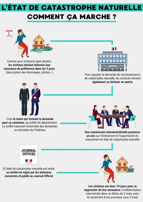 Pour que nous puissions constituer un dossier de demande d’État de Catastrophe Naturelle, suite aux intempéries, les personnes ayant subi des dégâts sont invitées à bien vouloir nous fournir les éléments suivants :