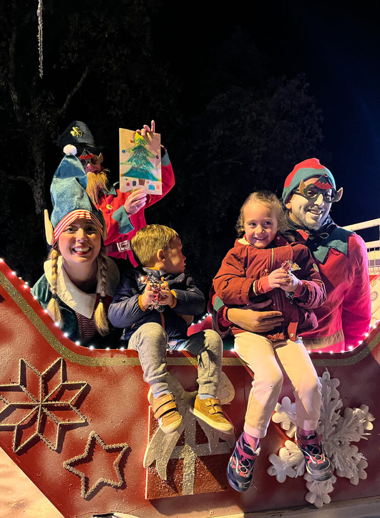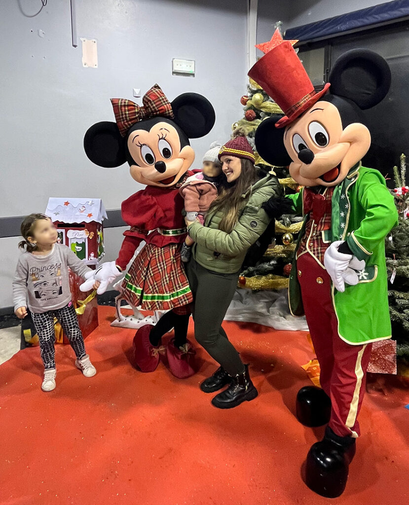 Le traditionnel défilé des lampions n’a pu avoir lieu à cause de la pluie, mais l’illumination du sapin a bien eu lieu, sur la place, avec de nombreux fans du Papa Noël qui après le compte à rebours les a inviter à rejoindre ses invités dans la salle des fêtes… Mickey, Minie, Stitch, cendrillon et Princess Elena ont fait le bonheur des petits et des grands : Un moment magique où l’on peut faire un câlin et prendre la pose avec des personnages Disney !