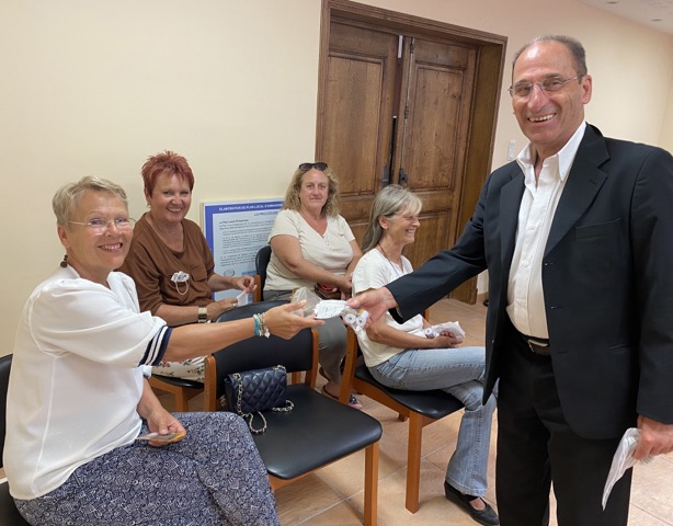 Chaleureusement remerciées, le maire a souhaité leur offrir des fournitures de couture et partager un pot de l’amitié en leur faveur.