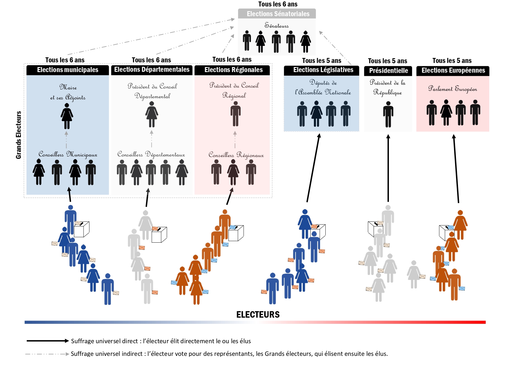 Après avoir pris connaissance des éléments ci-dessus, sachez qu’en tant que citoyen français de plus de 18 ans, jouissant de vos droits civils et politiques, vous pouvez élire vos différents représentants en allant voter aux élections suivantes: