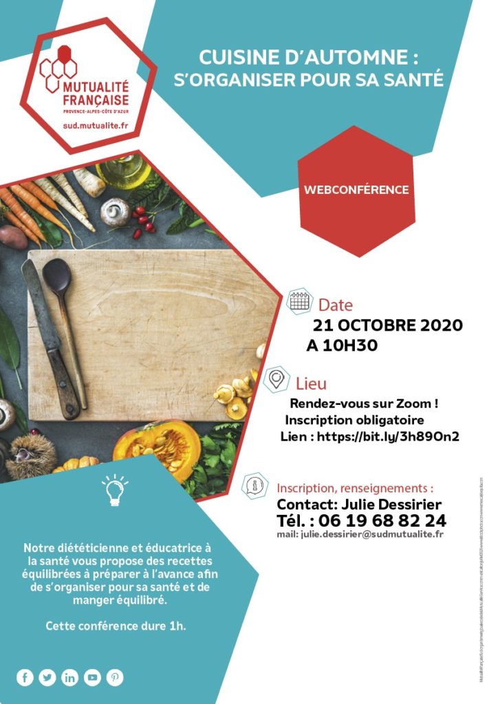 Inscription obligatoire et renseignement auprès de Julie DESSIRIER par téléphone : 06 19 68 82 24 ou par courriel : julie.dessirier@sudmutualite.fr